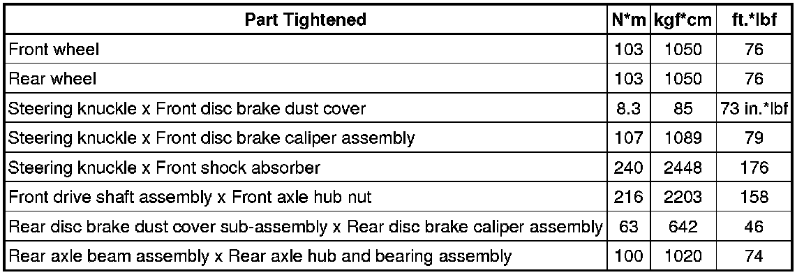 SPECIFICATIONS: AXLE AND DIFFERENTIAL: TORQUE SPECIFICATIONS