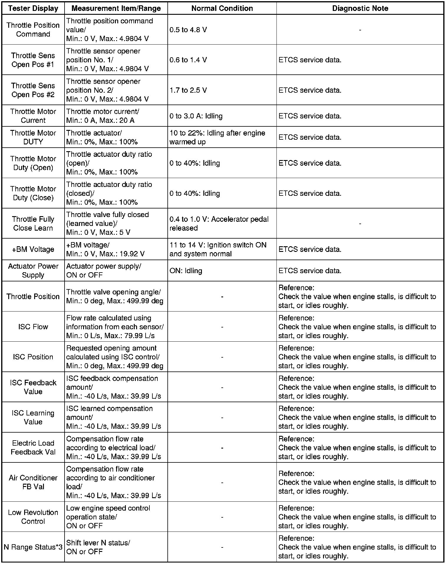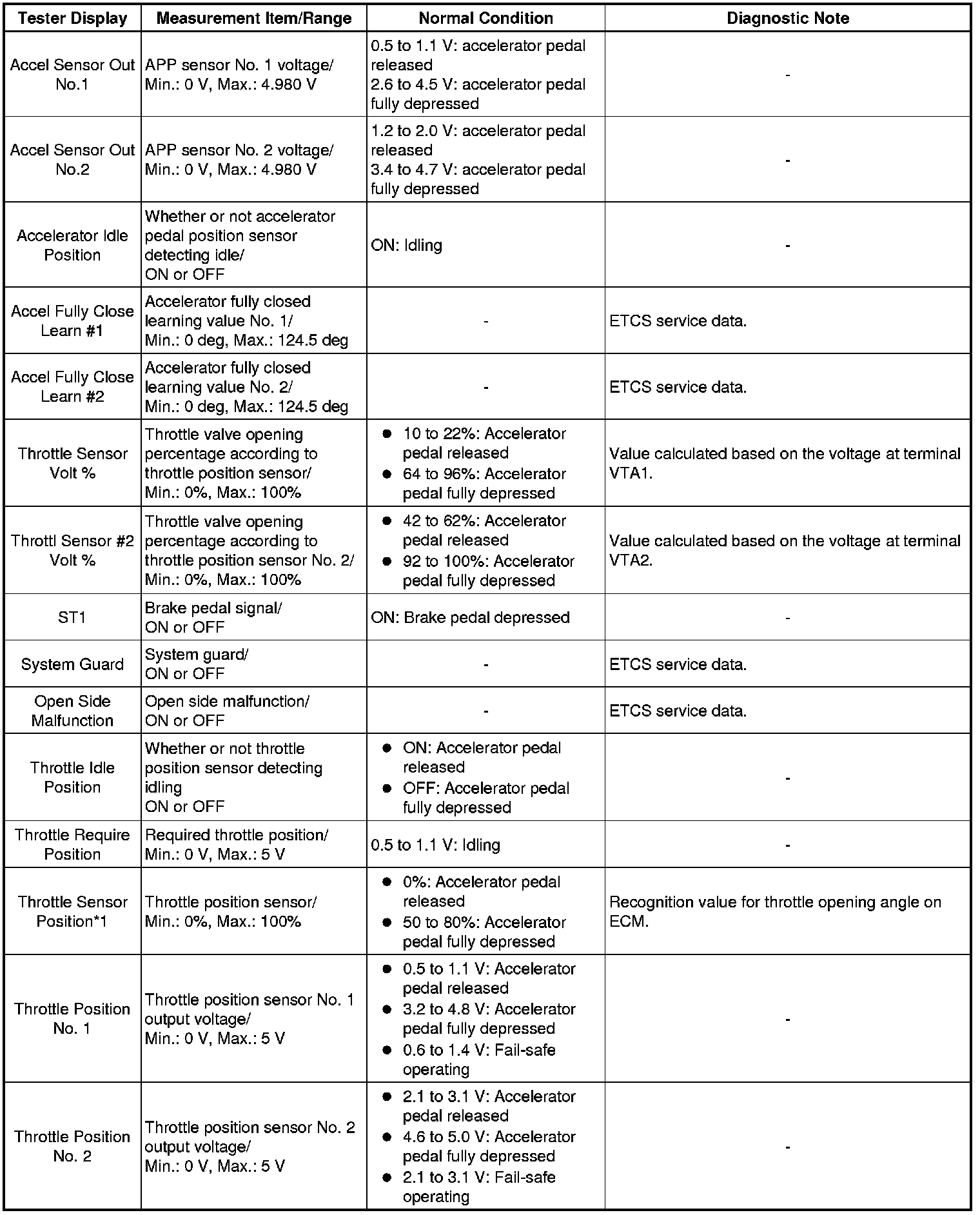 * *1: Excluding throttle valve opening percentage due to Idle Speed Control (ISC).