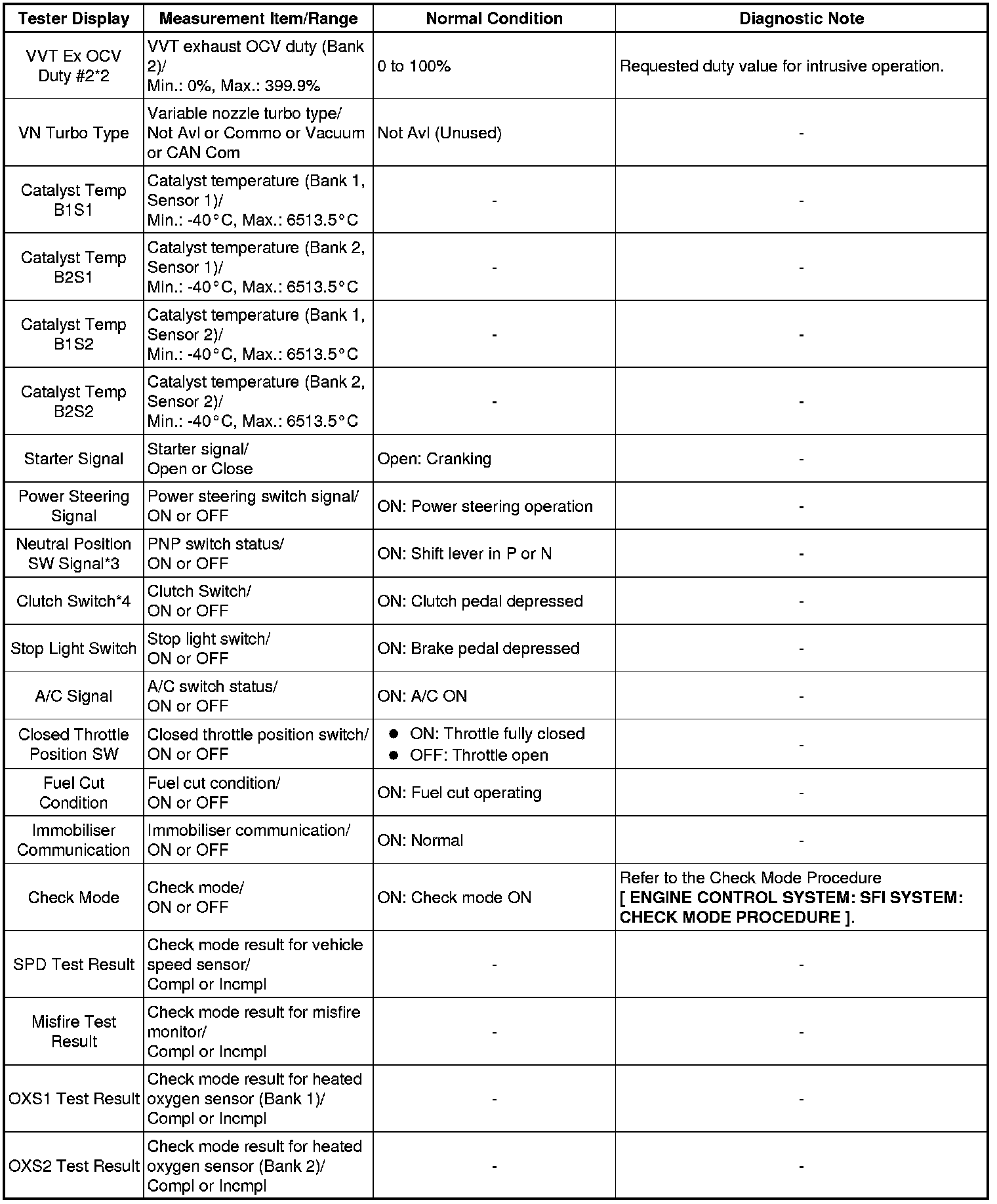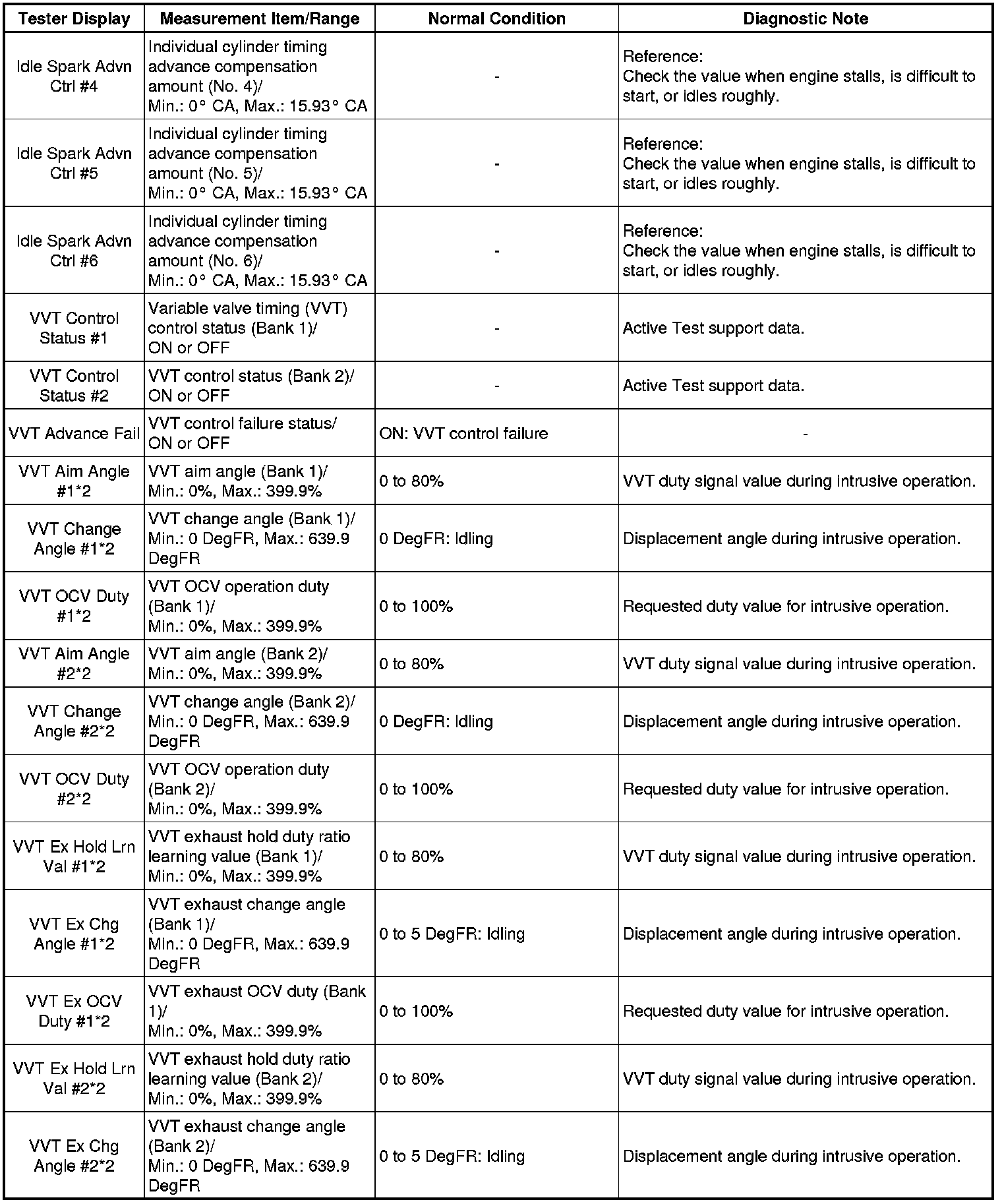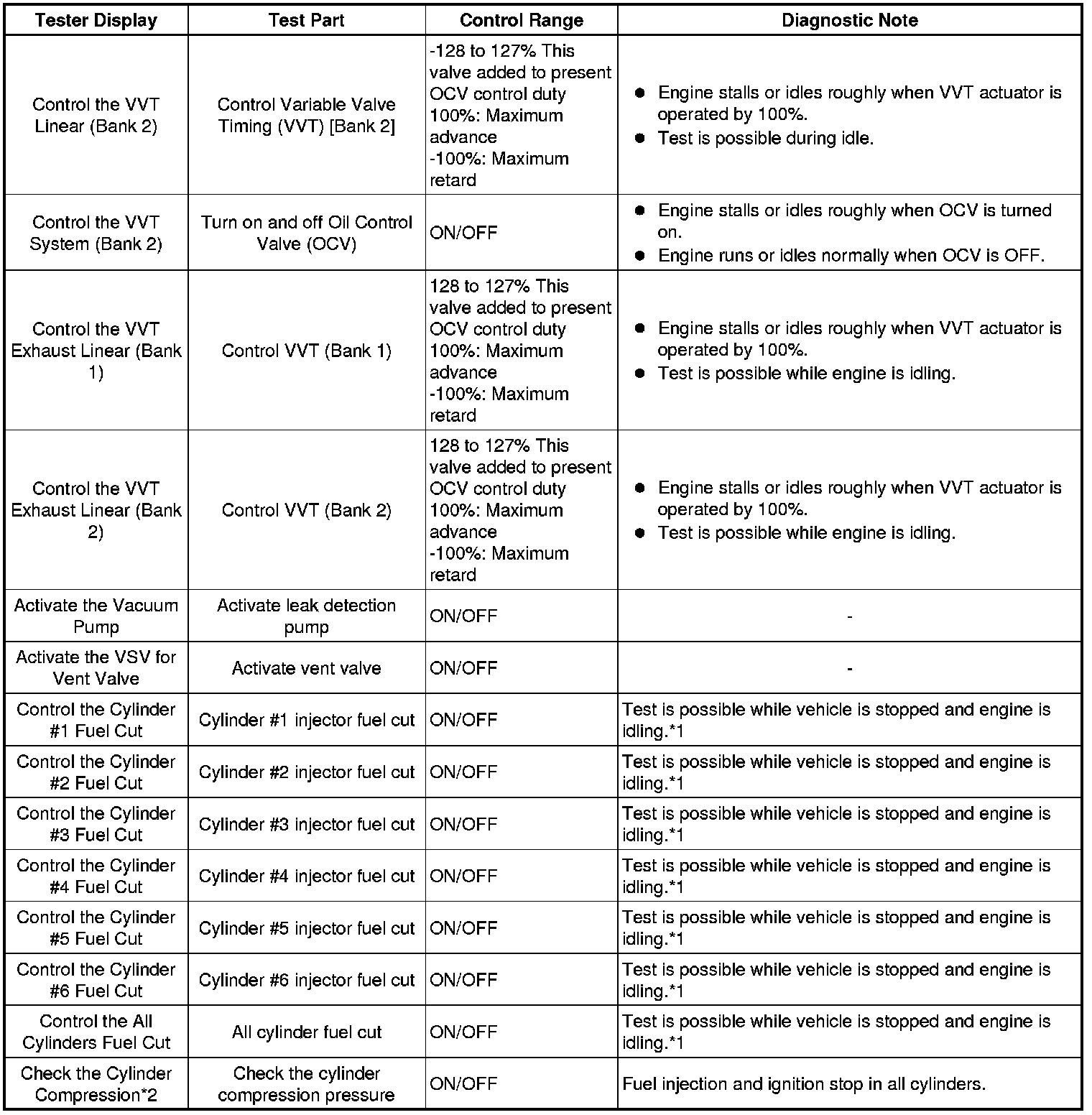 * *2: Data List values are only displayed when performing the following Active Tests: Control the VVT Linear (Bank 1), Control the VVT Linear (Bank 2), Control the VVT Exhaust Linear (Bank 1) and Control the VVT Exhaust Linear (Bank 2). For other Active Tests, the Data List value will be 0.