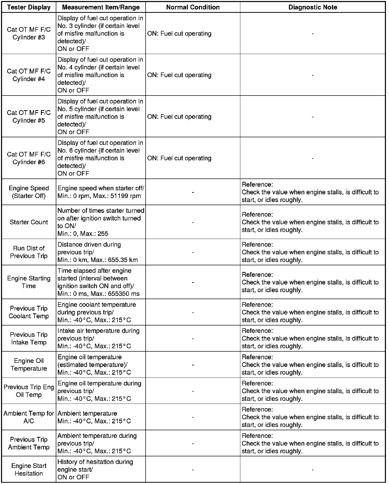 * Monitor the engine speed (Engine Speed of Cyl #1 to #6, Av Engine Speed of All Cyl) displayed on the Techstream.