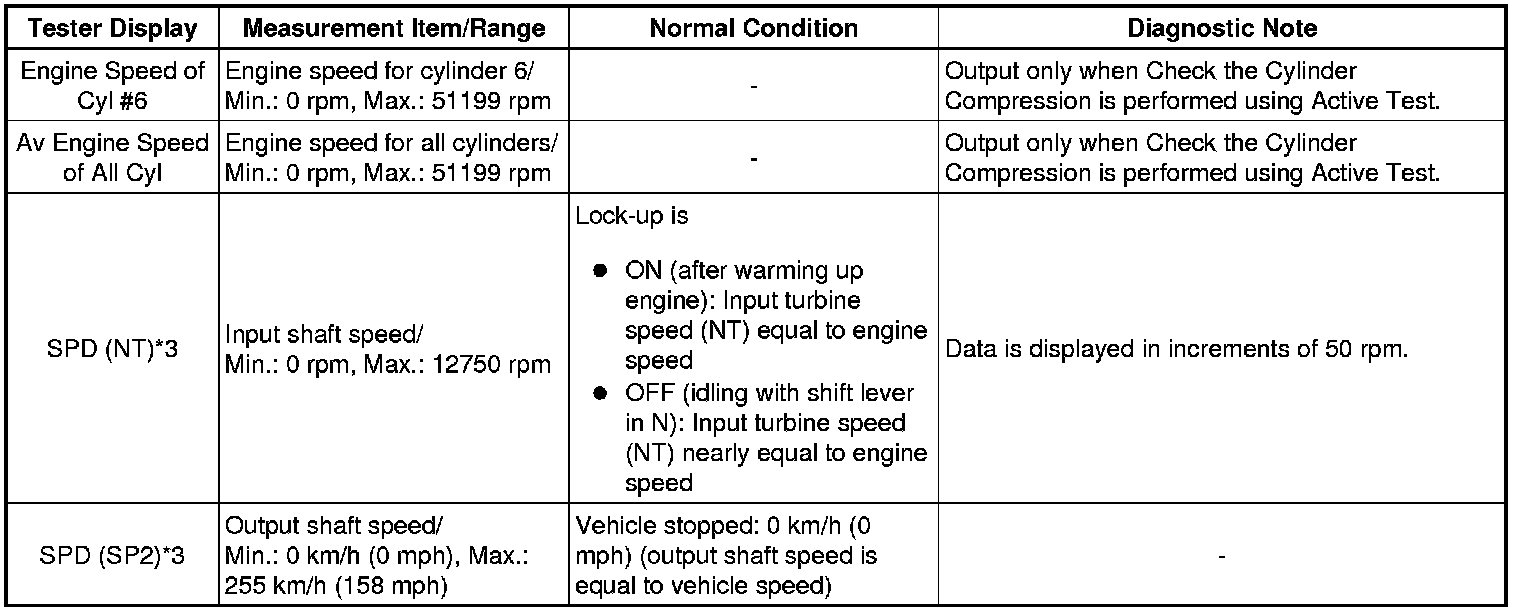 *2: When performing the Active Test item Check the Cylinder Compression and then cranking the engine, the ECM stops the fuel injection and ignition, and measures the engine speed for each cylinder.
