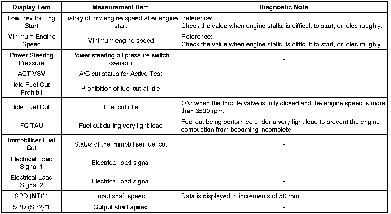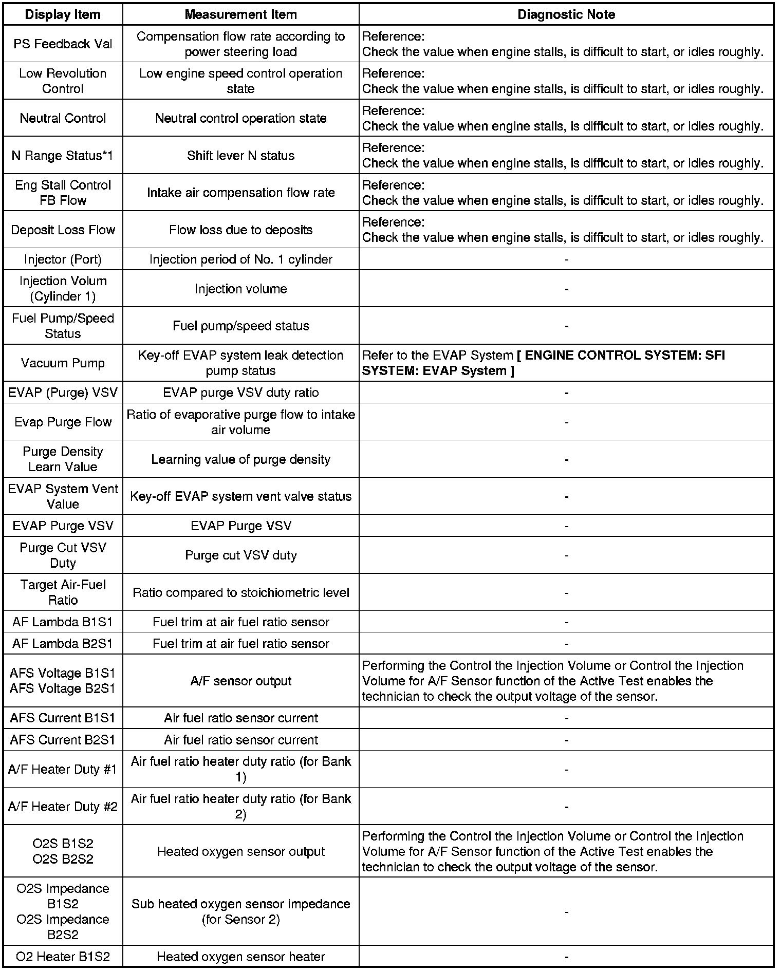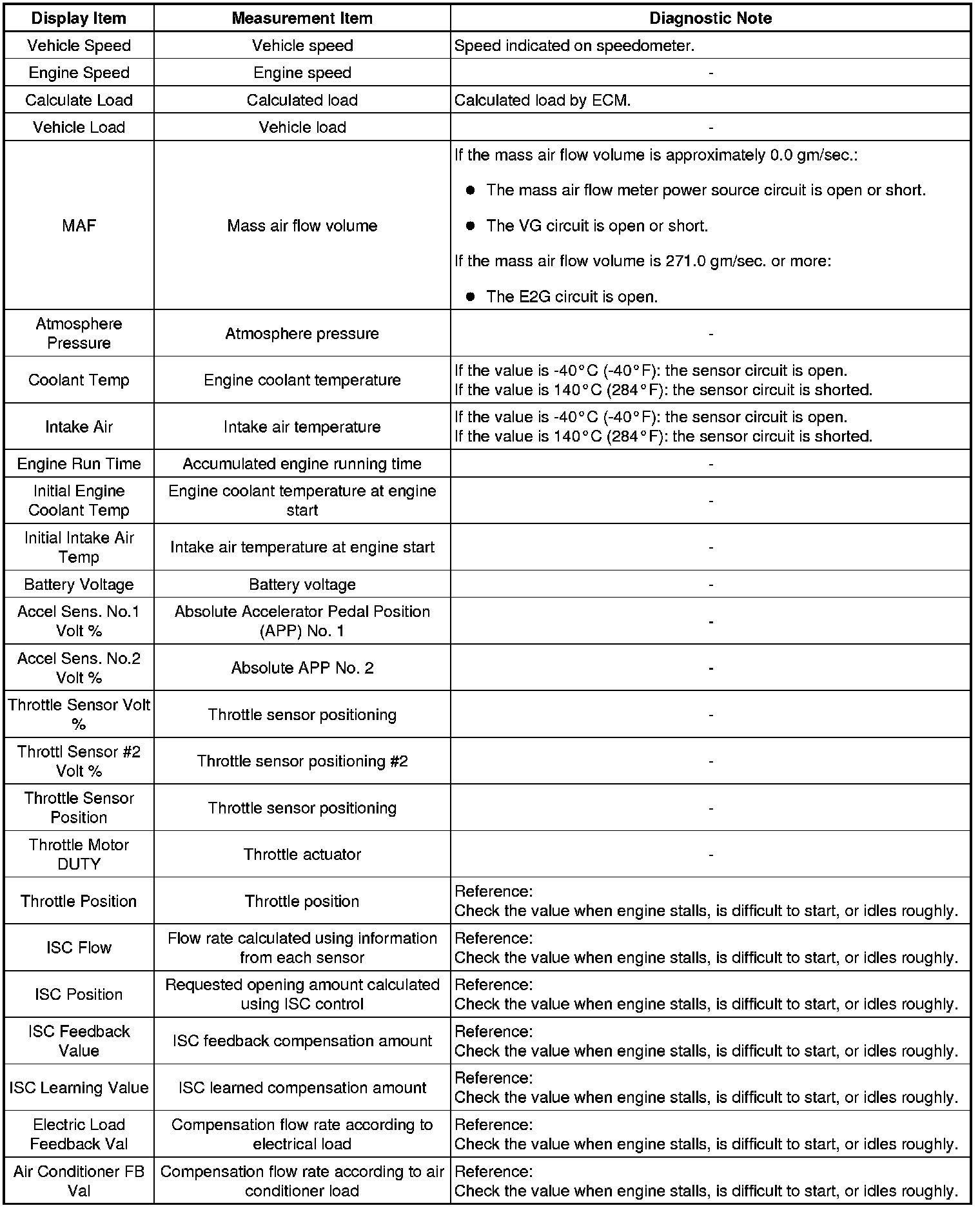 1GR-FE ENGINE CONTROL SYSTEM: SFI SYSTEM: FREEZE FRAME DATA