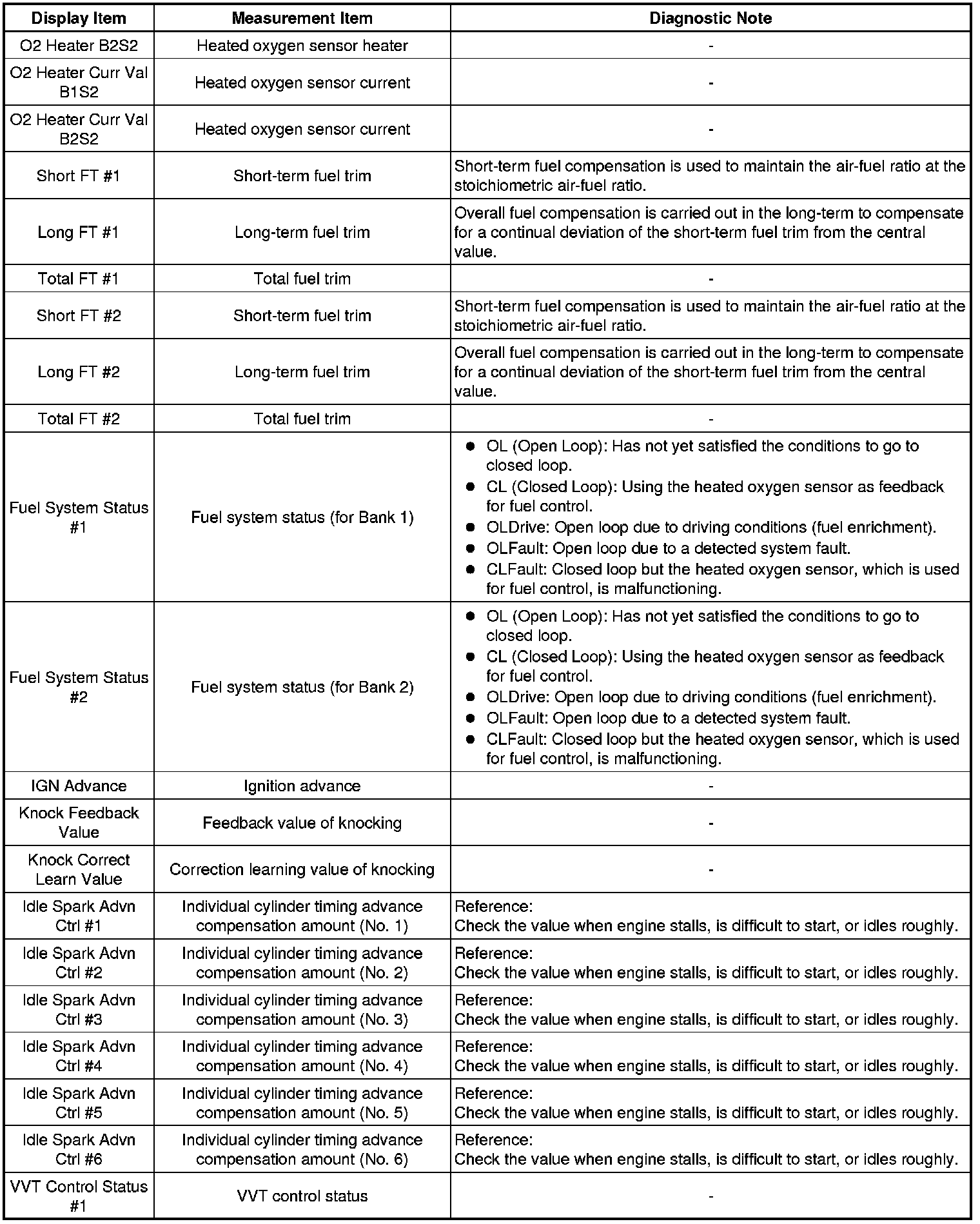 * Freeze frame data records the engine conditions (fuel system, calculated load, engine coolant temperature, fuel trim, engine speed, vehicle speed, etc.) when a malfunction is detected. When troubleshooting, it can help determine if the vehicle was running or stopped, the engine was warmed up or not, the air-fuel ratio was Lean or Rich, and other data from the time the malfunction occurred.