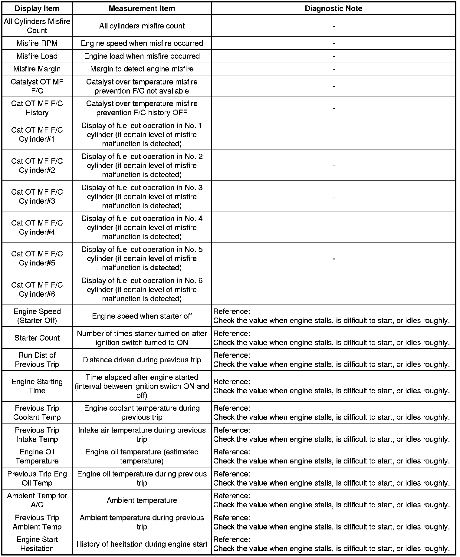 * The ECM records engine conditions in the form of freeze frame data every 0.5 seconds. Using the Techstream, 5 separate sets of freeze frame data can be checked.