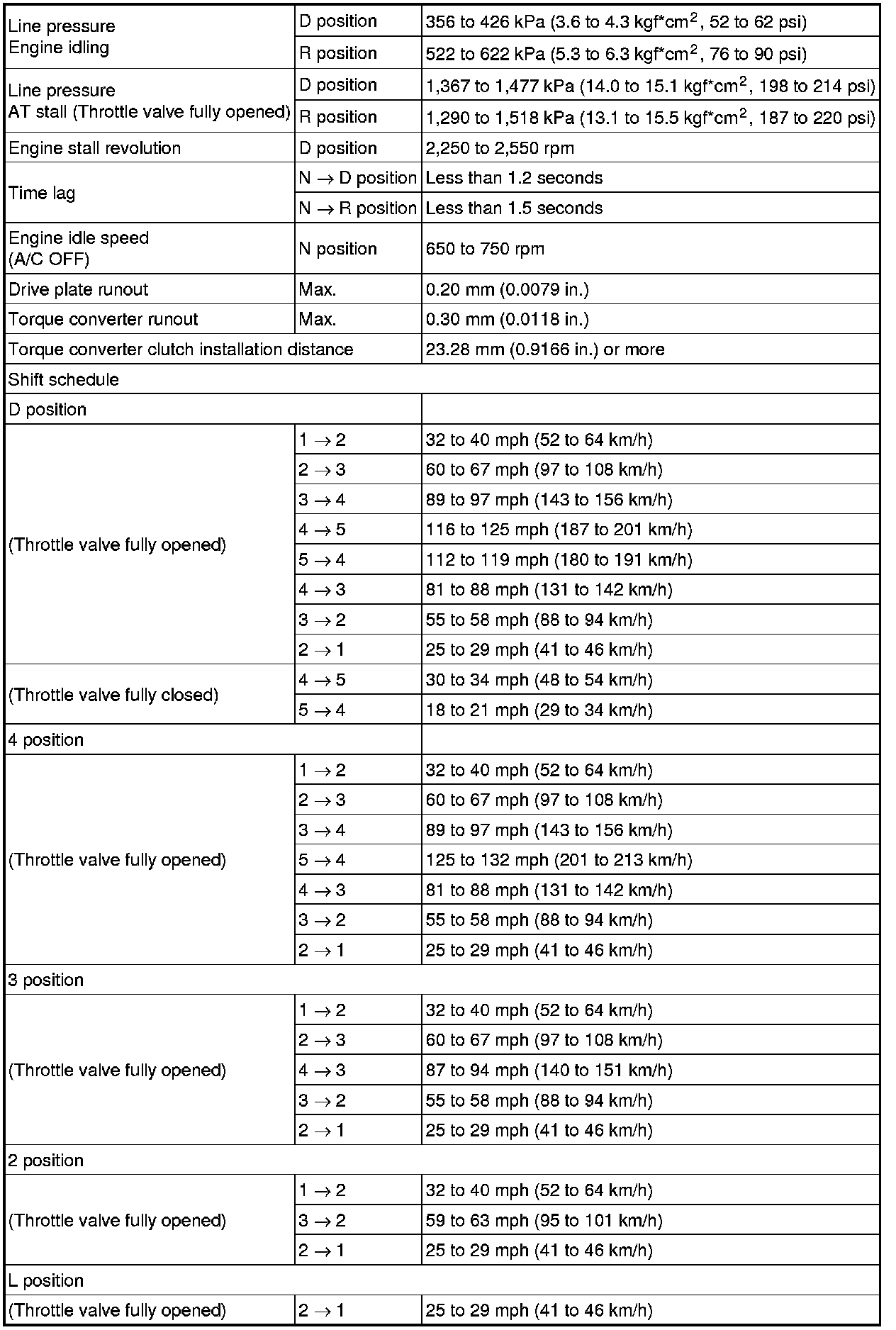 SERVICE SPECIFICATIONS: A750E AUTOMATIC TRANSMISSION: SERVICE DATA