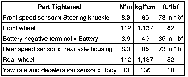 SERVICE SPECIFICATIONS: BRAKE CONTROL: TORQUE SPECIFICATIONS