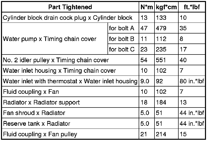 SERVICE SPECIFICATIONS: 1GR-FE COOLING: TORQUE SPECIFICATIONS