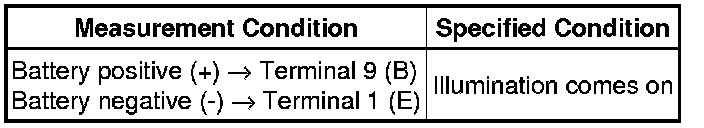 (1) Apply battery voltage to the power window regulator master switch and check that the illumination comes on.