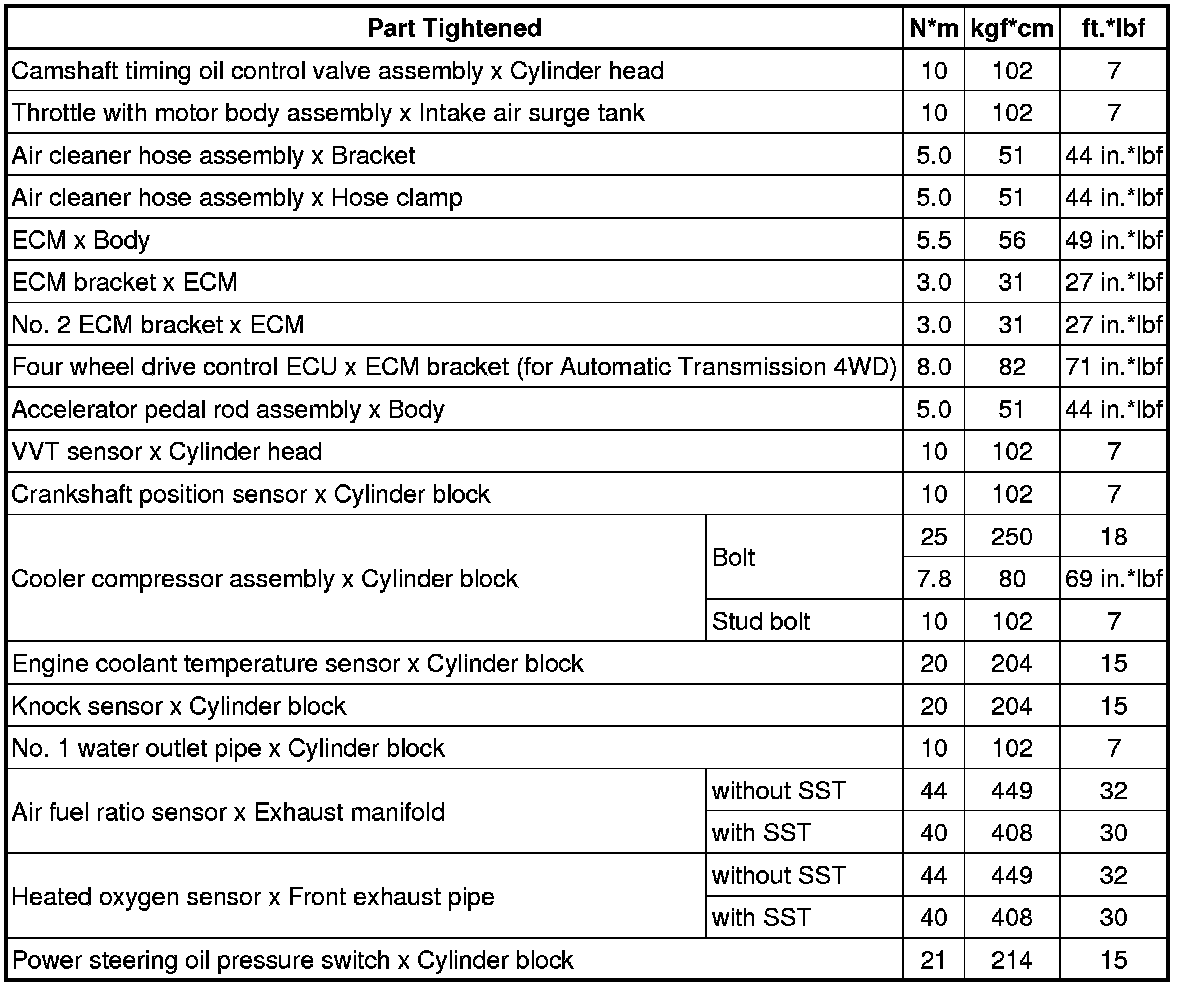 SERVICE SPECIFICATIONS: 1GR-FE ENGINE CONTROL SYSTEM: TORQUE SPECIFICATIONS