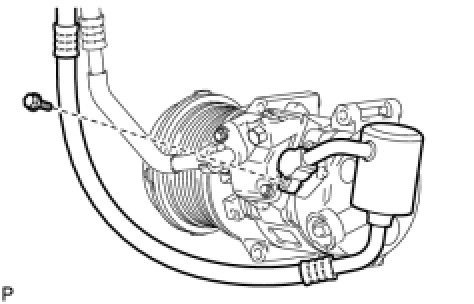 (d) Install the suction hose sub-assembly onto the compressor assembly with pulley with the bolt.