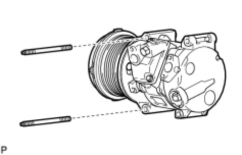 (a) Using a "TORX" socket wrench (E8), temporarily install the compressor assembly with pulley with the 2 stud bolts.