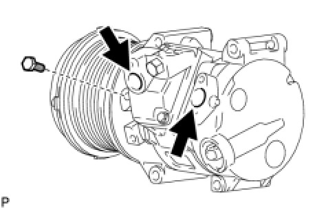 (b) Apply sufficient compressor oil to a new O-ring and the fitting surface of the compressor assembly with pulley.