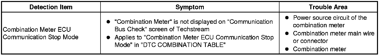 CAN COMMUNICATION: CAN COMMUNICATION SYSTEM: Combination Meter ECU Communication Stop Mode