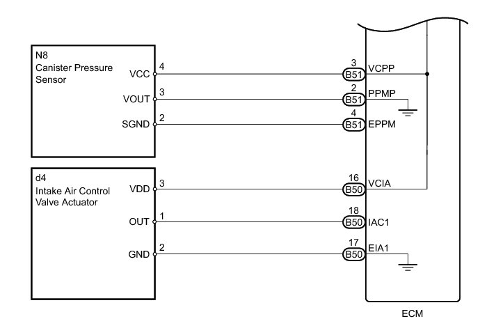 When the VC circuit is shorted, the microprocessor in the ECM and sensors that are supplied with power through the VC circuit are inactivated because the power is not supplied from the VC circuit. Under this condition, the system does not start up and the MIL does not illuminate even if the system malfunctions.