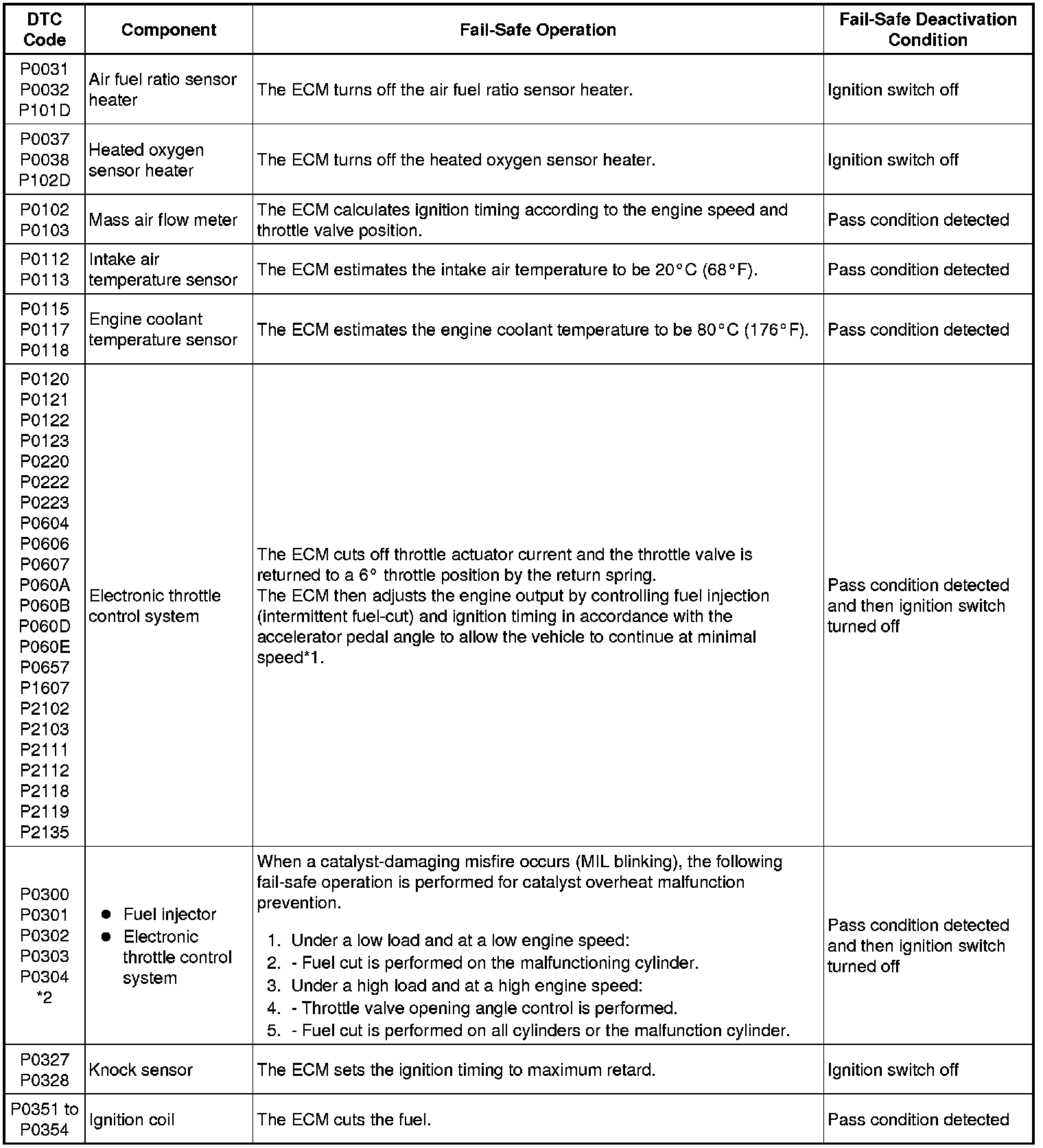 * *2: Misfire-related fail-safe operations occur when catalyst overheat malfunctions occur.
