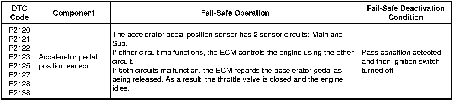 If any of the following DTCs are stored, the ECM enters fail-safe mode to allow the vehicle to be driven temporarily or stops fuel injection.