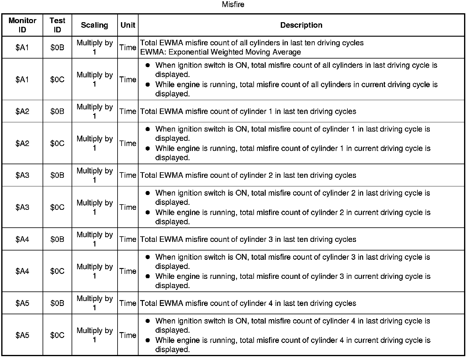 If you use a generic scan tool, multiply the value by the scaling value listed below.