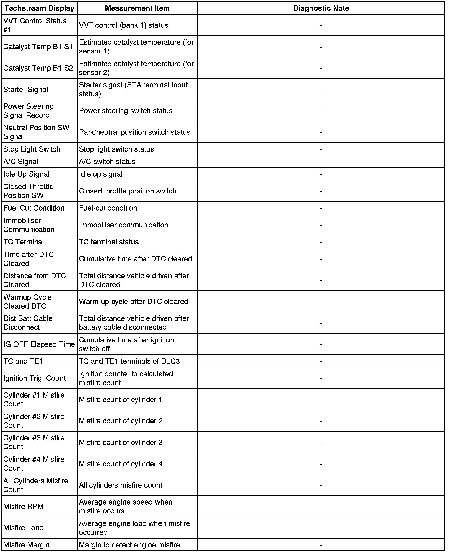 * The ECM records engine conditions in the form of freeze frame data every 0.5 seconds. Using the Techstream, 5 separate sets of freeze frame data, including the data values at the time when the DTC is stored, can be checked.