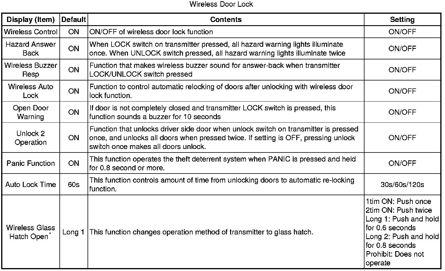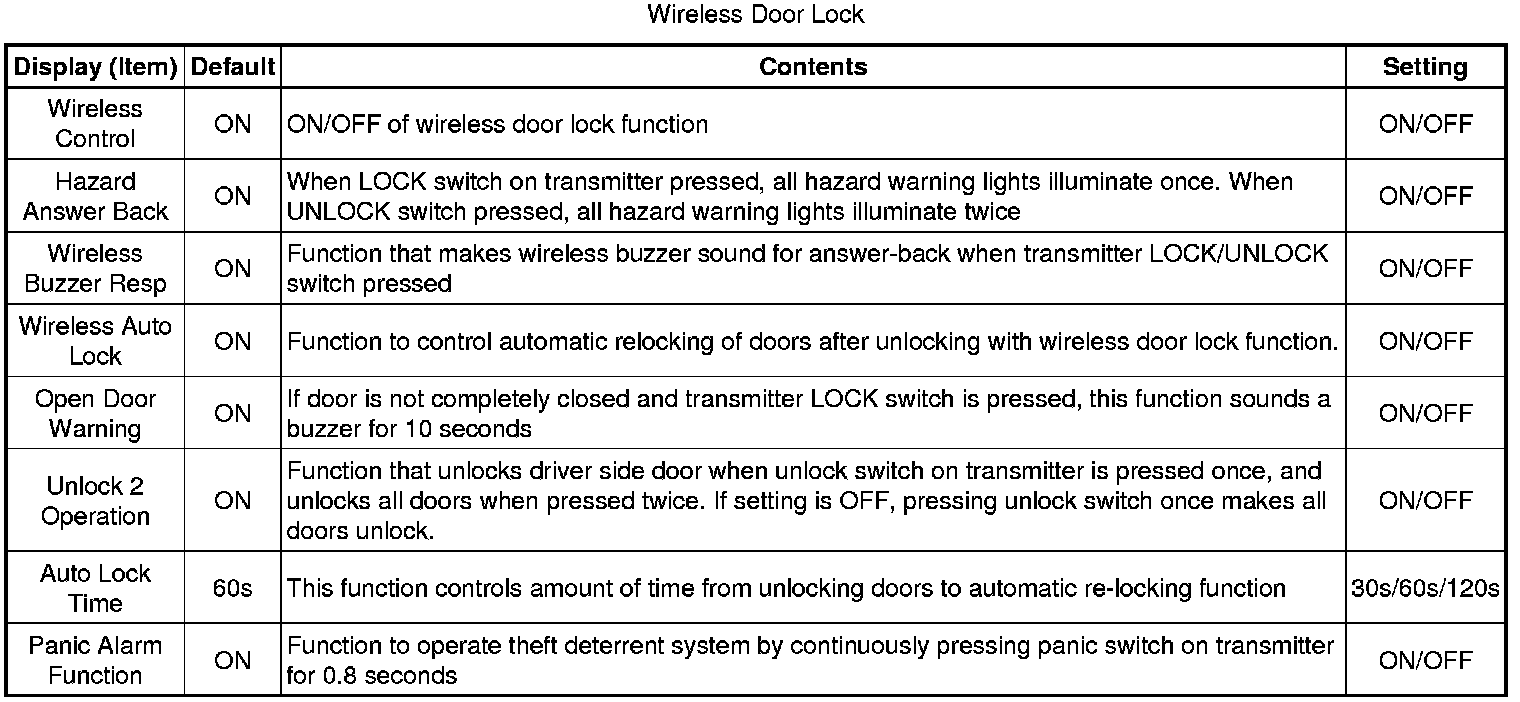 The function only changes the entry unlock mode of the smart key system. This function is not for the wireless door lock control.