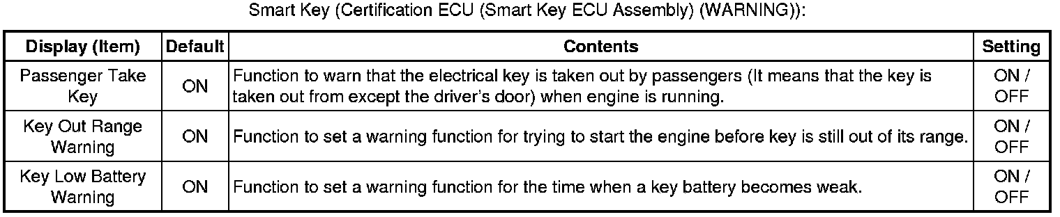 (c) The certification ECU (smart key ECU assembly) sounds the wireless door lock buzzer and the buzzer of the combination meter to inform the user that the mode has been switched.