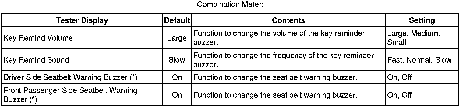*: This setting is only valid for the buzzer which sounds at the 20 km/h (12 mph) or more.