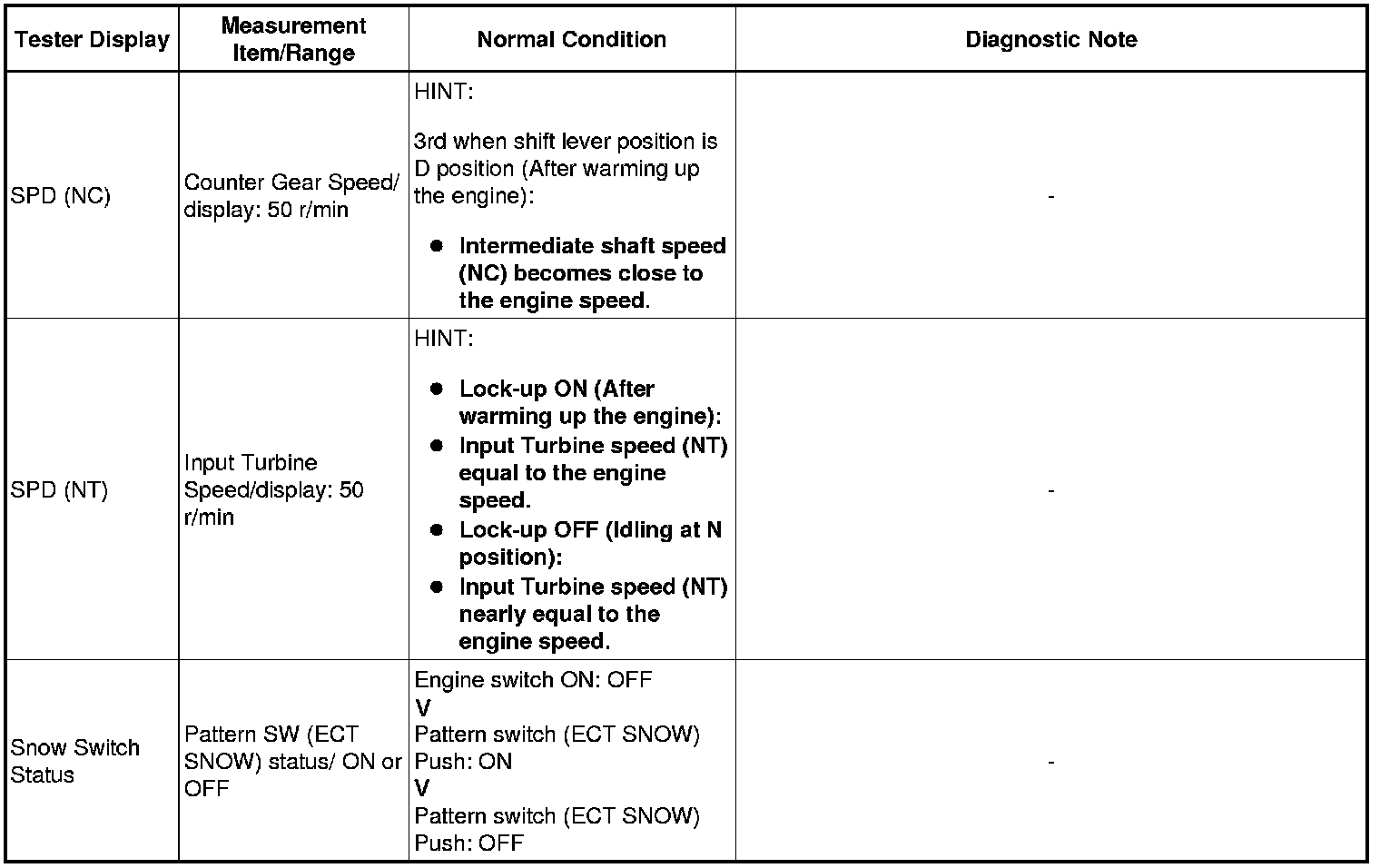 Using Techstream to read the Data List allows the values or states of switches, sensors, actuators and other items to be read without removing any parts. This non-intrusive inspection can be very useful because intermittent conditions or signals may be discovered before parts or wiring is disturbed. Reading the Data List information early in troubleshooting is one way to save diagnostic time.
