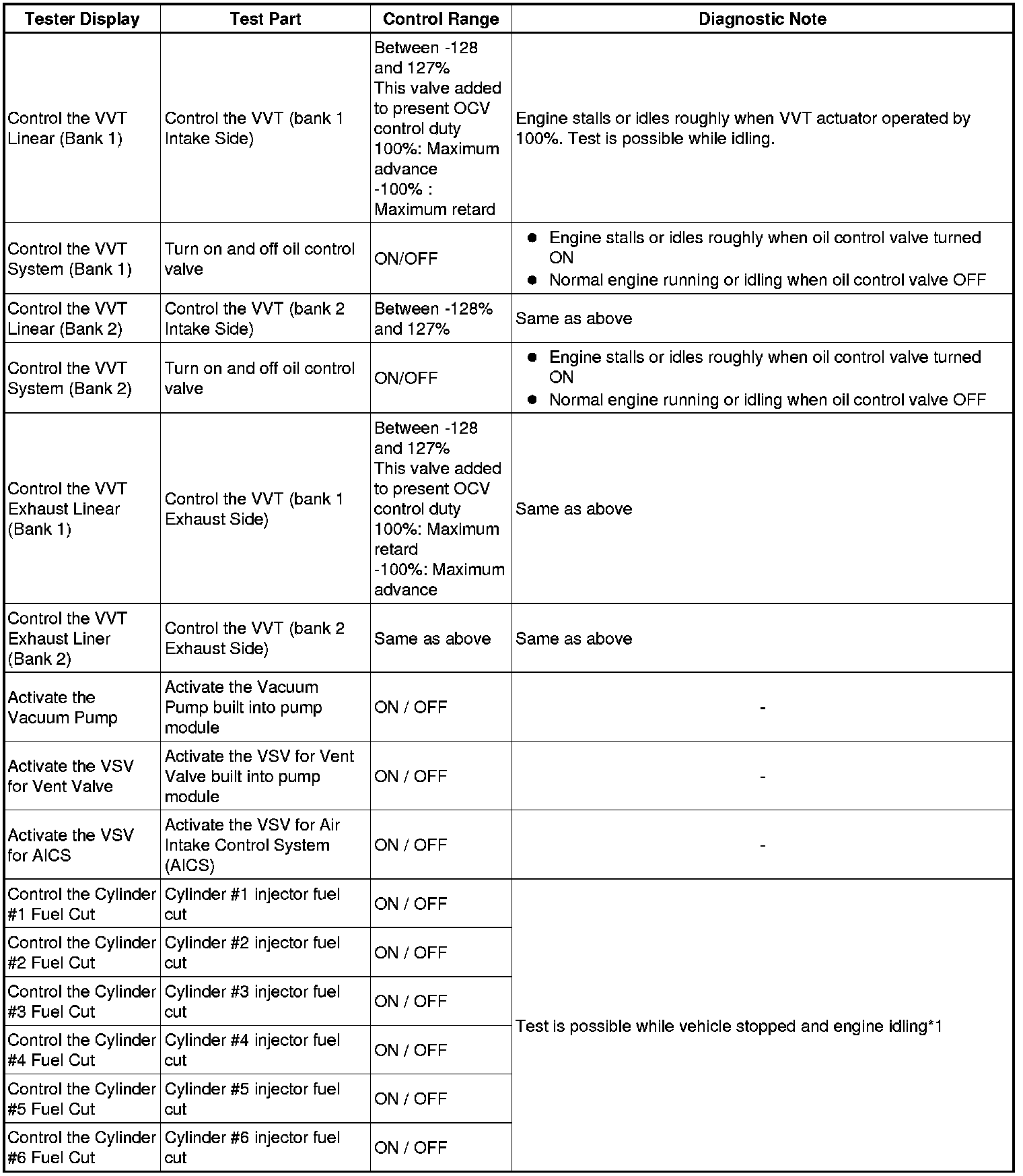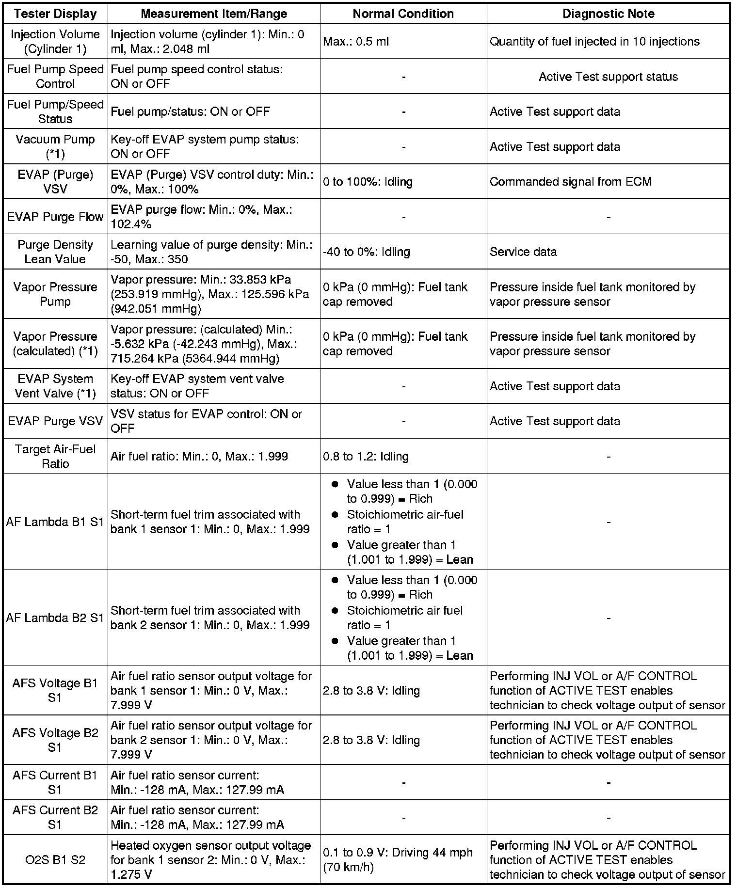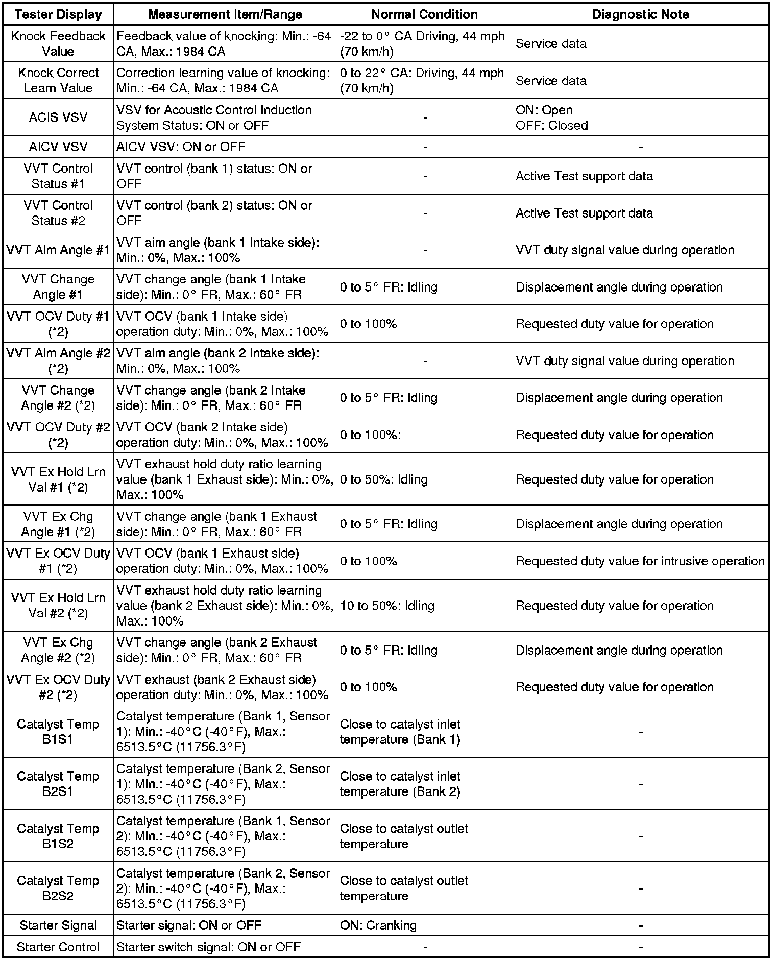 *2: Values are only displayed when performing the Active Test: Control the VVT Linear (Bank 1 or Bank 2) or Control the VVT Exhaust Linear (Bank 1 or Bank 2). For other Active Tests, the value will be 0.
