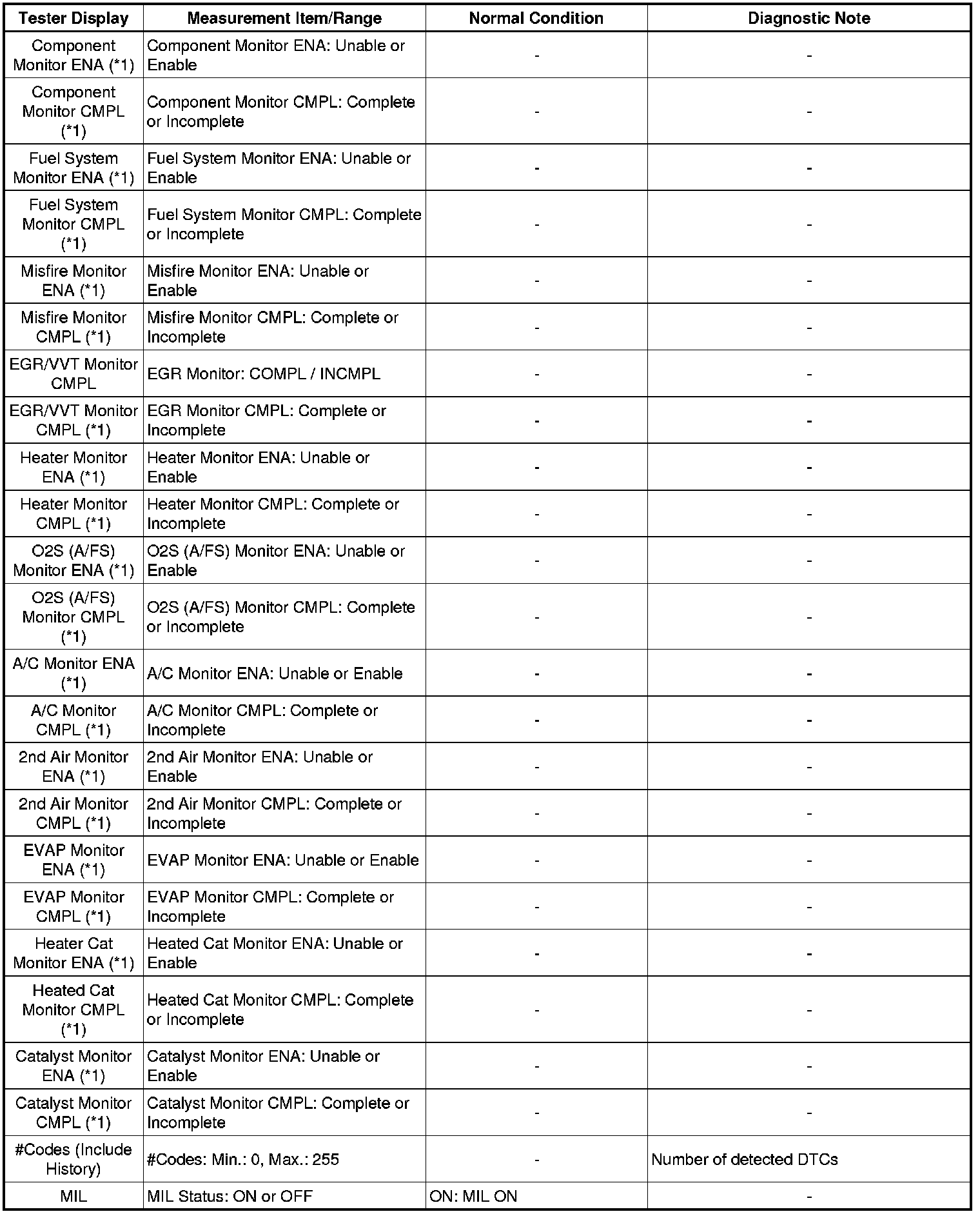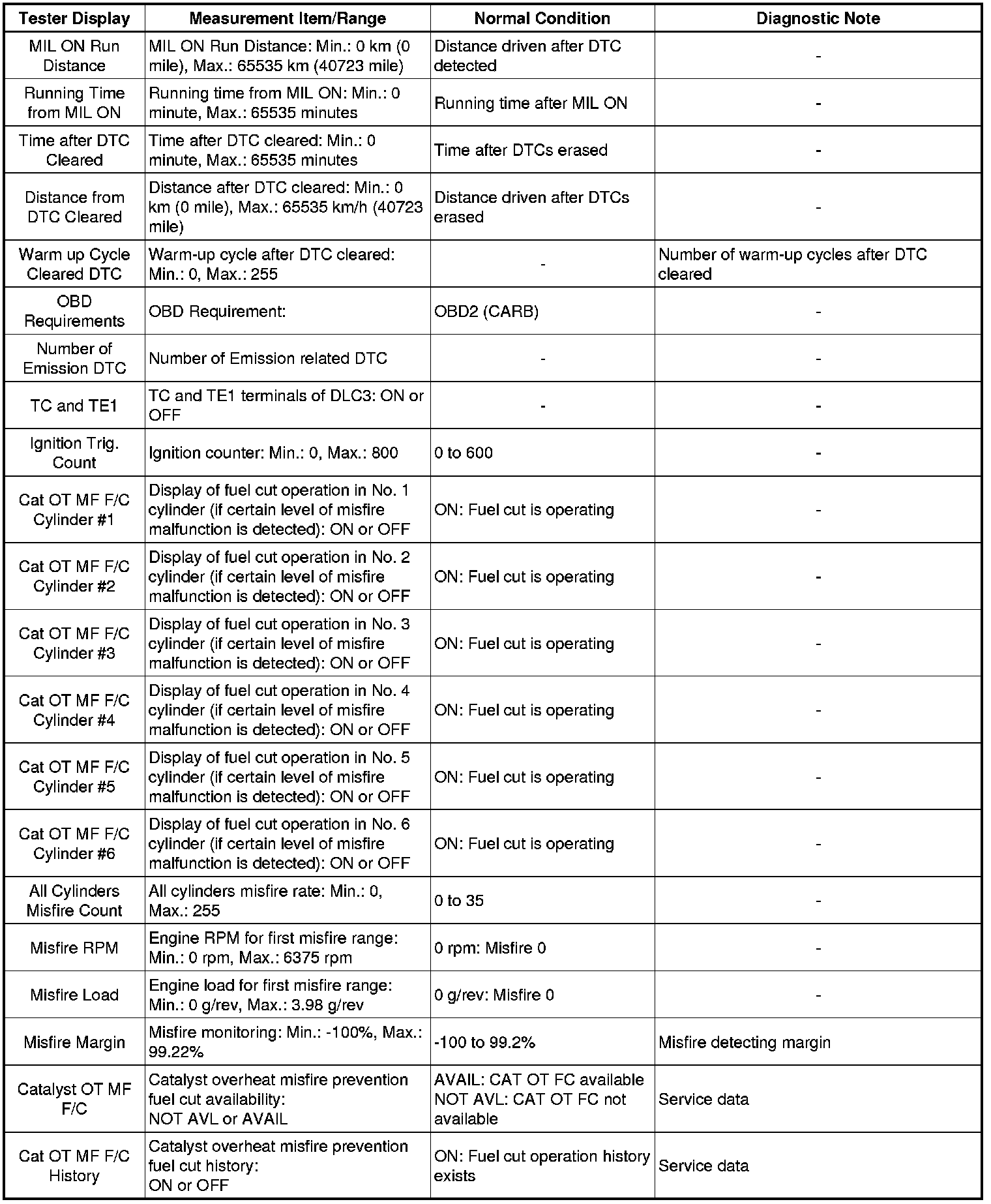 * *1: If the display of the Data List's Catalyst OT MF F/C item is Not Avl, perform this Active Test with the vehicle stopped and the engine idling.