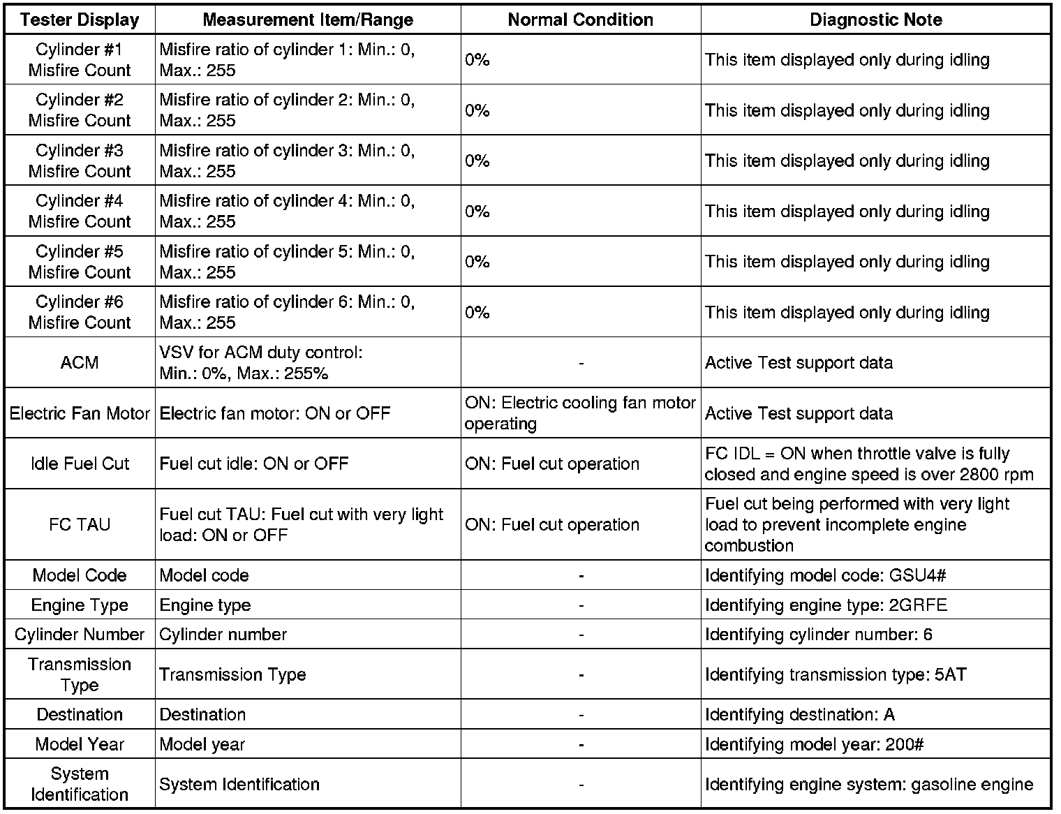 2GR-FE ENGINE CONTROL SYSTEM: SFI SYSTEM: DATA LIST / ACTIVE TEST