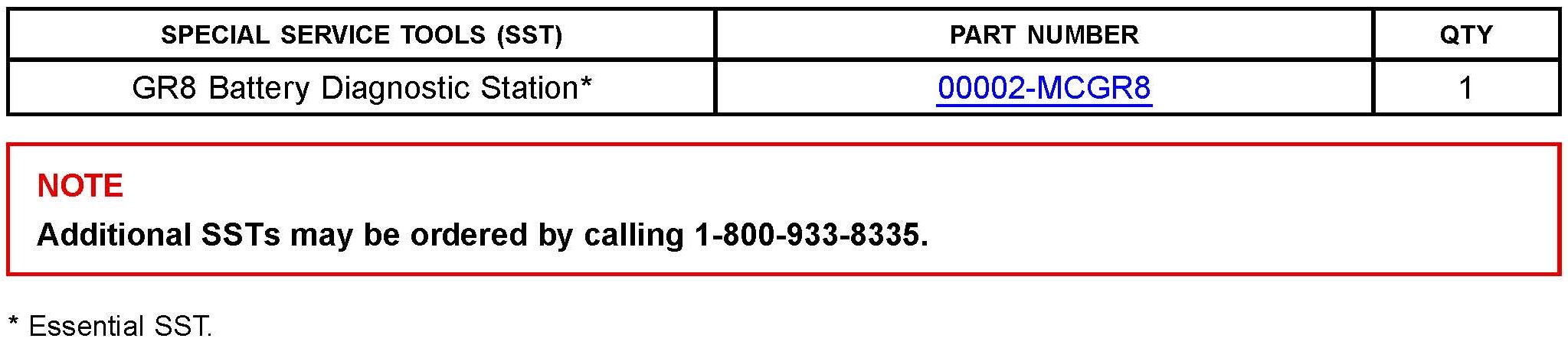 ^ For details on how to use the GR8 Battery Diagnostic Station, refer to the GR8 Instruction Manual located on the Technical Information System (TIS), Diagnostics - Tools & Equipment - Battery Diagnostics.