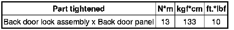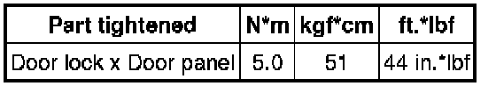 SPECIFICATIONS: DOOR LOCK: TORQUE SPECIFICATIONS