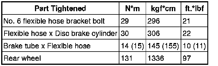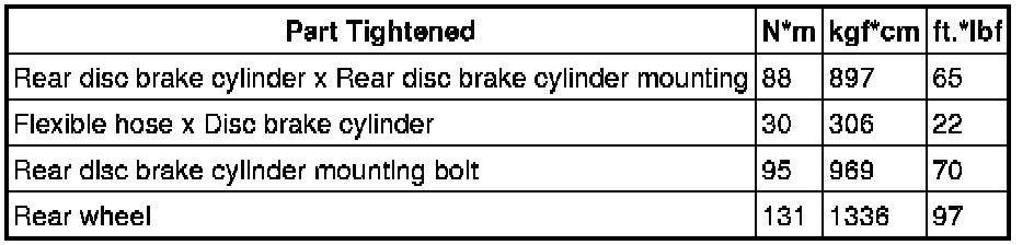 SPECIFICATIONS: BRAKE (REAR): TORQUE SPECIFICATIONS