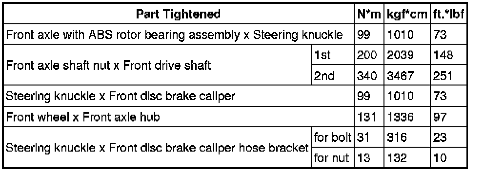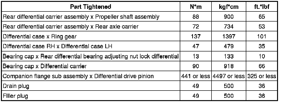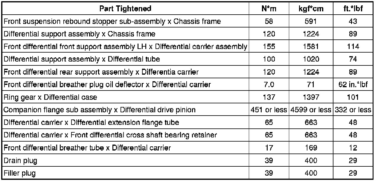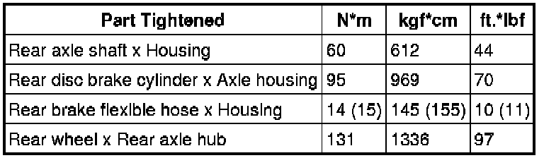 SPECIFICATIONS: AXLE AND DIFFERENTIAL: TORQUE SPECIFICATIONS( ): For use without union nut wrench.