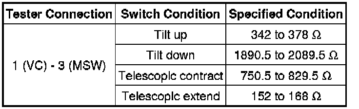 SPECIFICATIONS: STEERING COLUMN: SERVICE DATA