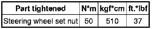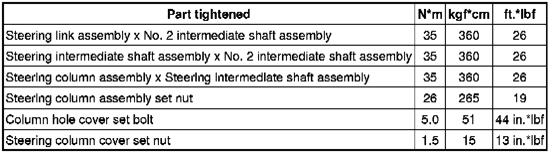 SPECIFICATIONS: STEERING COLUMN: TORQUE SPECIFICATIONS