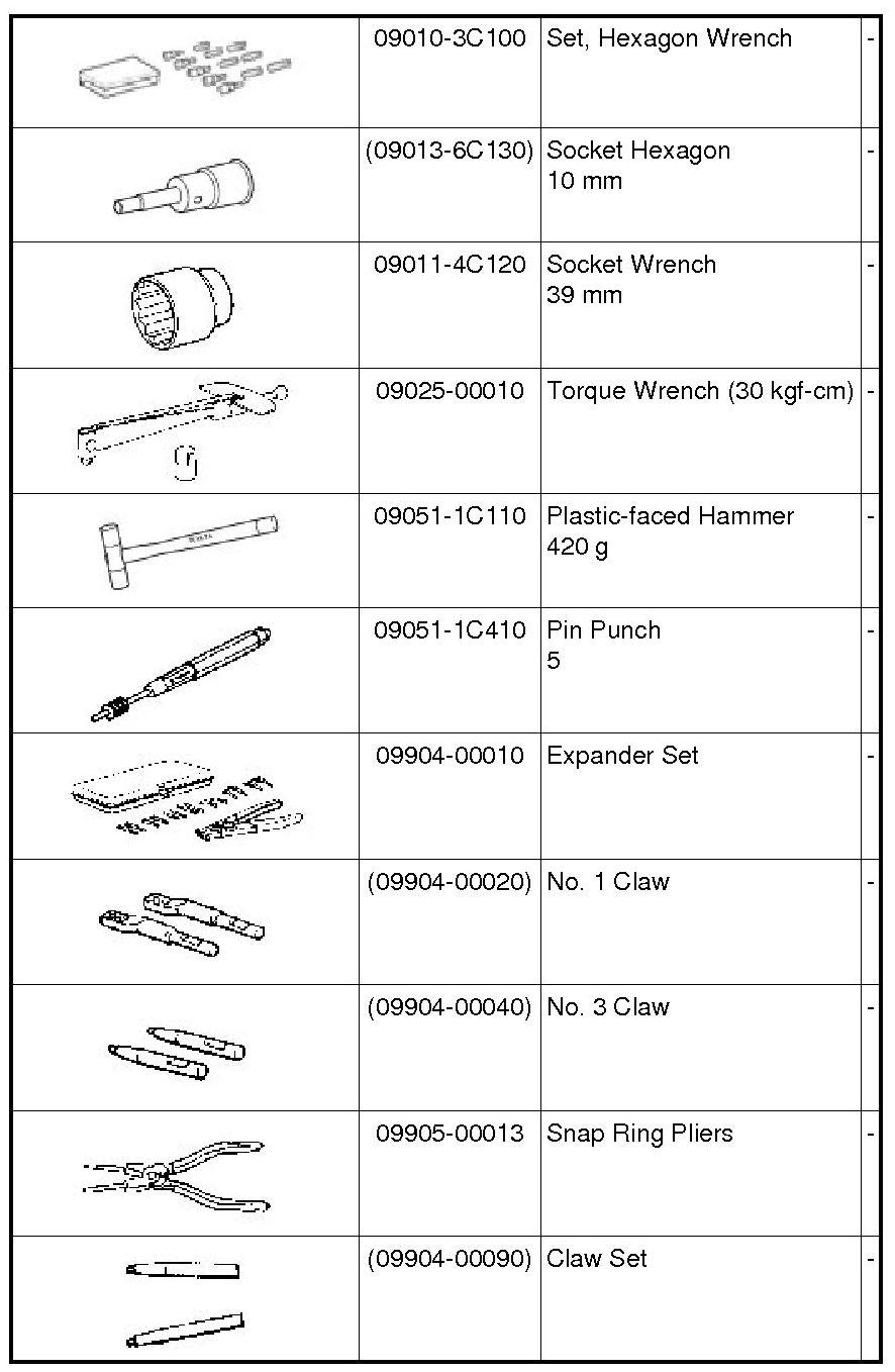 PREPARATION: AXLE AND DIFFERENTIAL: RECOMMENDED TOOLS