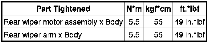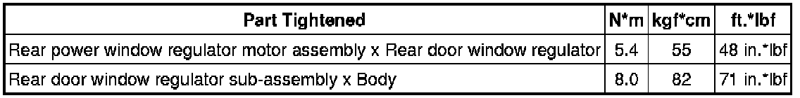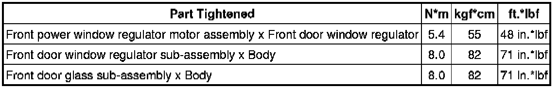 SPECIFICATIONS: WINDOW / GLASS: TORQUE SPECIFICATIONS