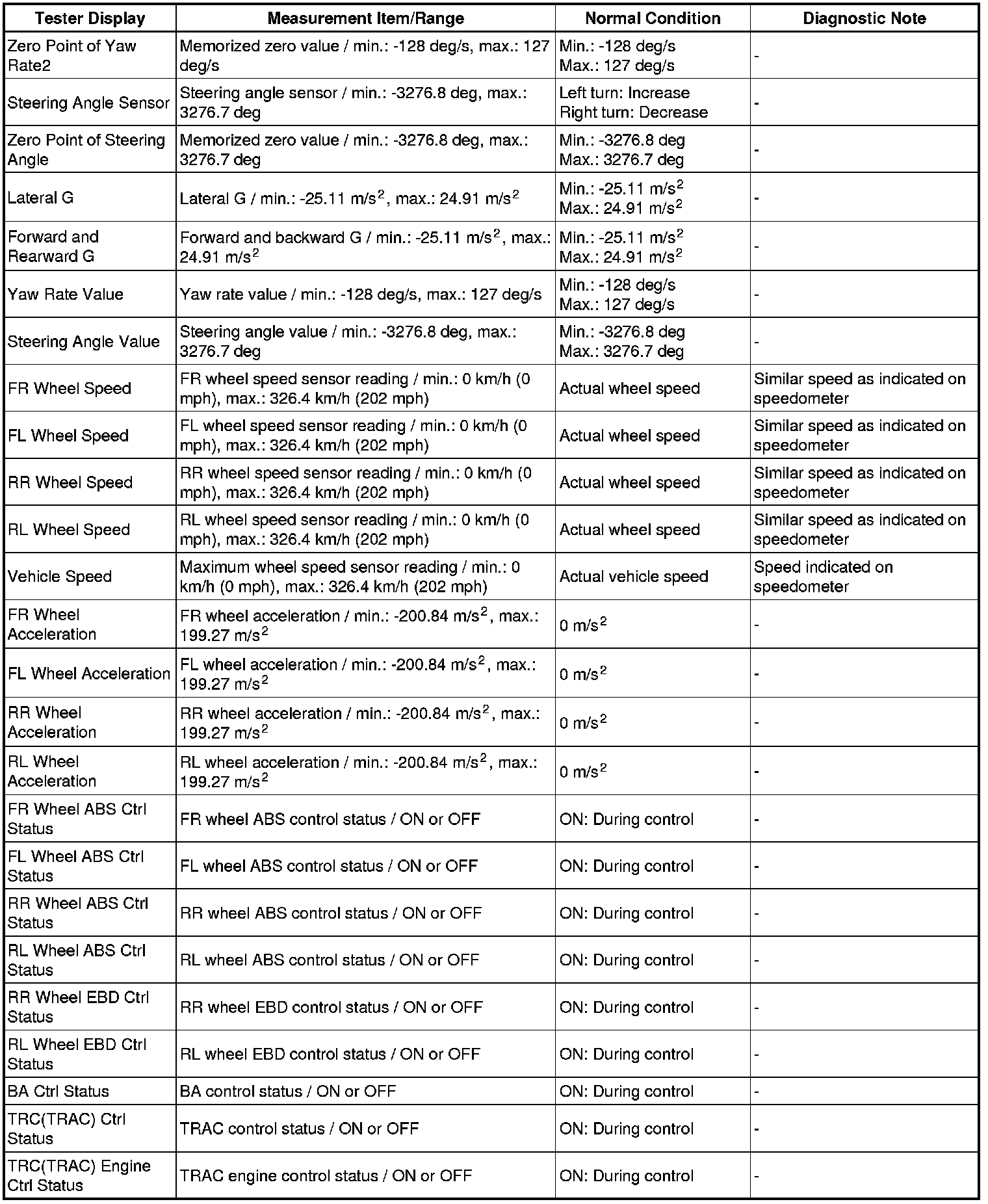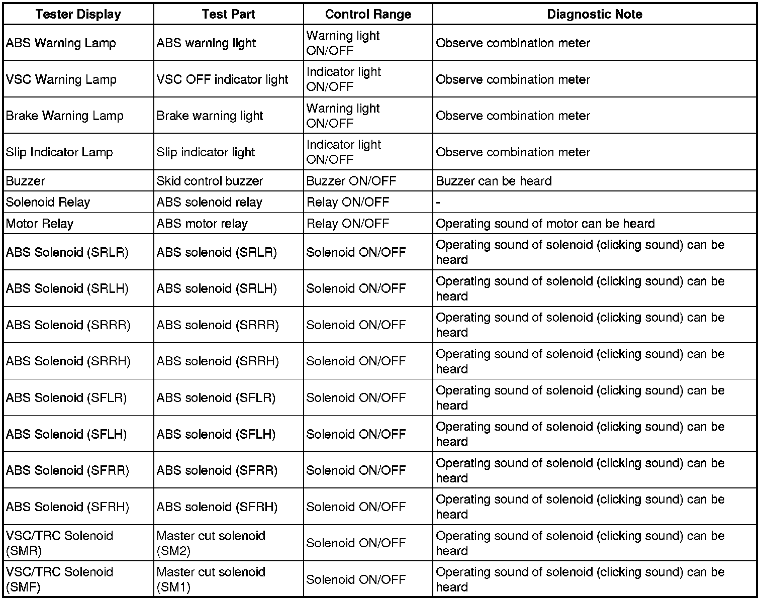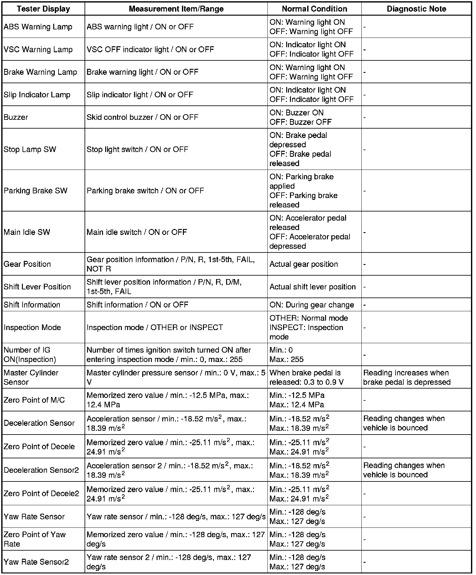 BRAKE CONTROL / DYNAMIC CONTROL SYSTEMS: VEHICLE STABILITY CONTROL SYSTEM (for 2AZ-FE): DATA LIST / ACTIVE TEST