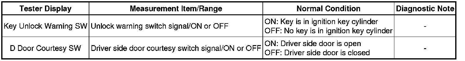 DOOR LOCK: KEY REMINDER WARNING SYSTEM: DATA LIST / ACTIVE TEST