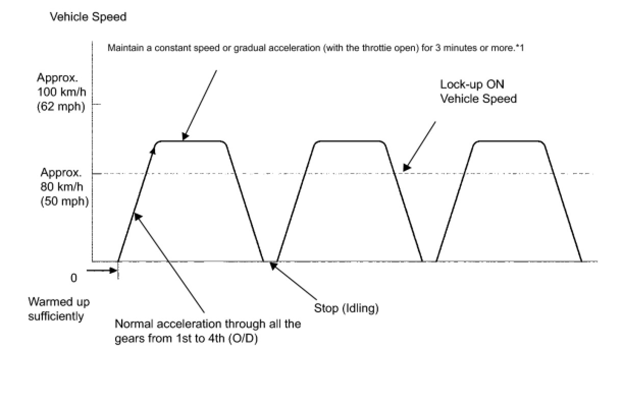 *1: Drive at such a speed in the uppermost gear, to engage lock-up. The vehicle can be driven at a speed lower than that in the above diagram under the lock-up condition.