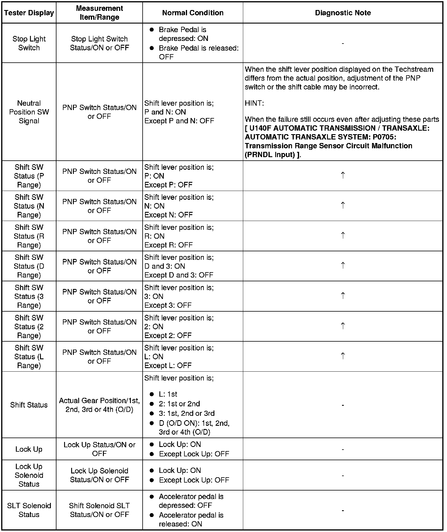 Using the Techstream to read the Data List allows the values or states of switches, sensors, actuators and other items to be read without removing any parts. This non-intrusive inspection can be very useful because intermittent conditions or signals may be discovered before parts or wiring is disturbed. Reading the Data List information early in troubleshooting is one way to save diagnostic time.