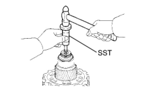 (c) Using SST, remove the rear angular ball bearing from the underdrive planetary gear.
