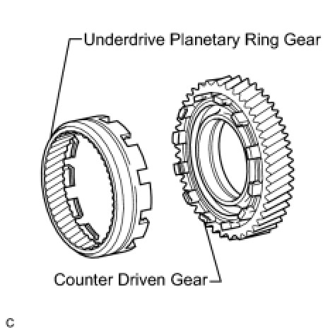 (b) Remove the underdrive planetary ring gear from the counter driven gear.