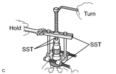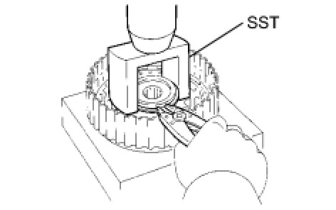 (a) Using SST, remove the cylindrical roller bearing inner race.