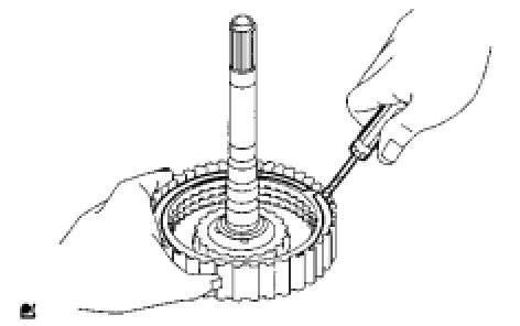 (a) Using a screwdriver, pry out the snap ring from the transaxle.