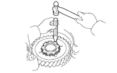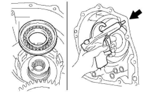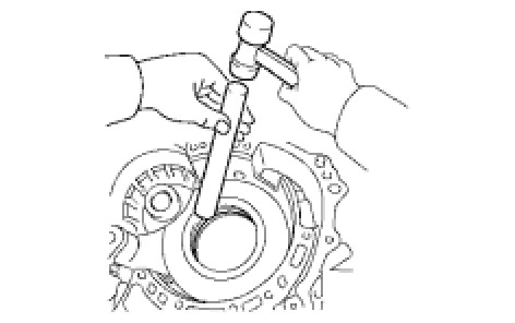 (d) Using a brass bar and a hammer, tap out the 2 bearing outer races.