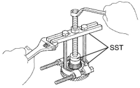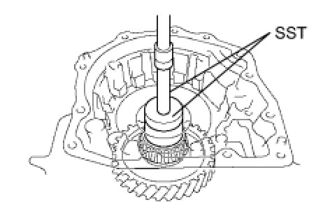 (a) Using SST, remove the cylindrical roller bearing from the transaxle.