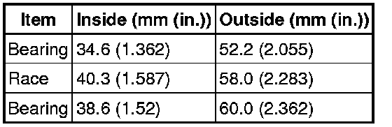Standard Bearing and Race Diameter: