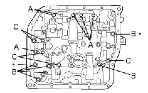Because the bolts labeled A are seal bolts, apply FIPG to new bolts and tighten them within 10 minutes after application.