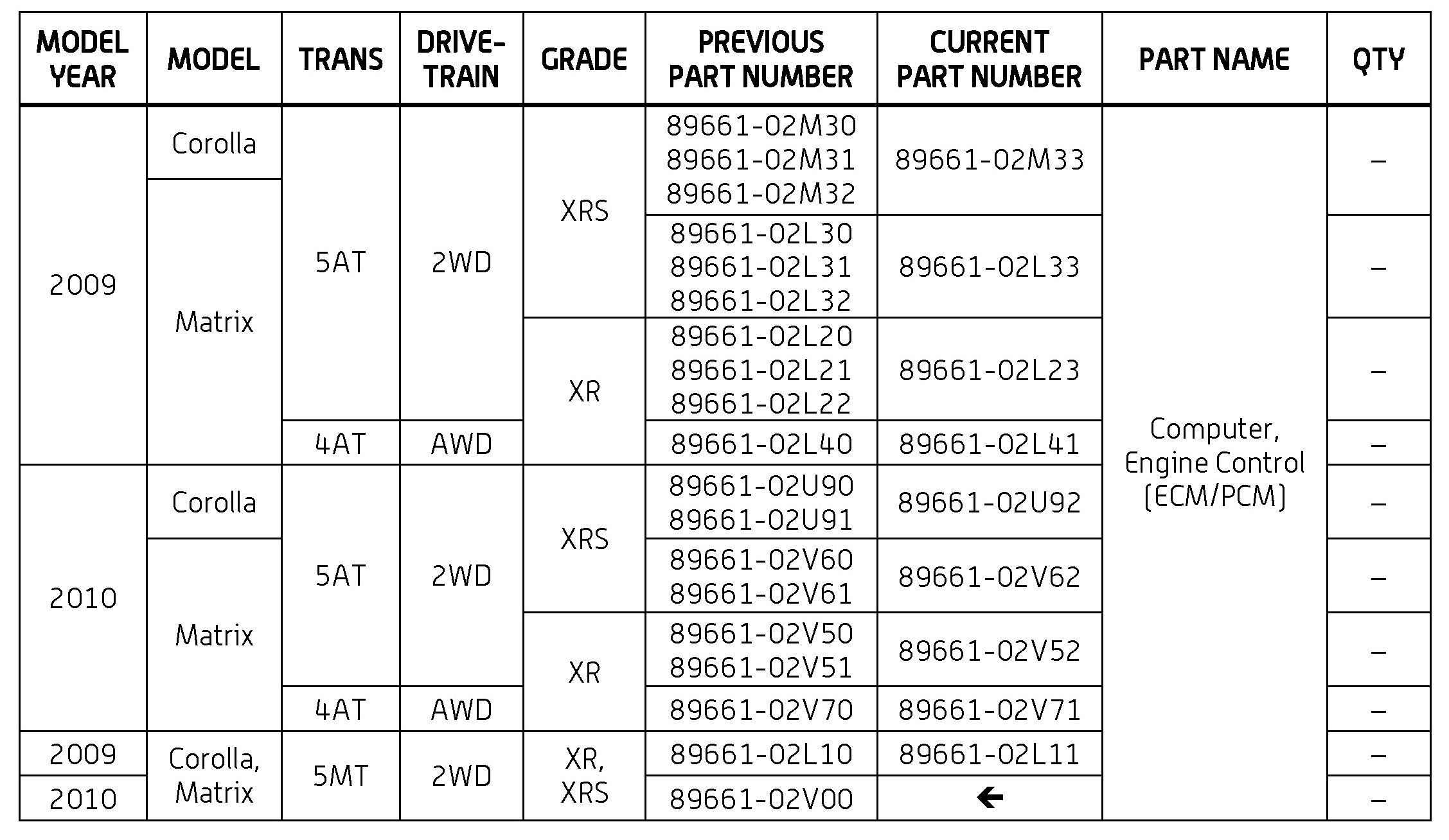Some 2009 - 2010 model year Corolla and Matrix vehicles with a 2AZ engine may exhibit a MIL "ON" condition with Diagnostic Trouble Code (DTC) P0456 - Evaporative Emission Control System Leak Detected (Very Small Leak). The Engine Control Module/ECM (SAE term: Powertrain Control Module/PCM) logic has been modified to reduce the possibility of this condition occurring.